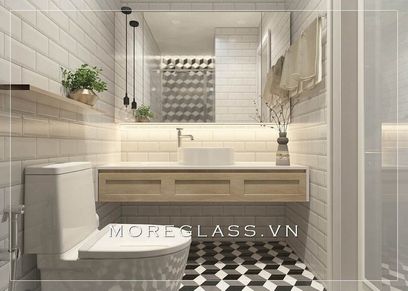Với gương lớn, bạn có thể không chỉ sử dụng để xem lại bản thân mà còn là để tạo ra sự phản chiếu ánh sáng và tăng cường không gian cho phòng tắm. Kế đến, việc sử dụng kệ để trưng bày các bình hoa hay cây xanh không chỉ mang lại vẻ đẹp tự nhiên mà còn giúp kiểm soát độ ẩm trong phòng và khử mùi hiệu quả. Hãy thử áp dụng hai yếu tố này vào thiết kế của phòng tắm của bạn và khám phá sự thay đổi ngay tức thì!